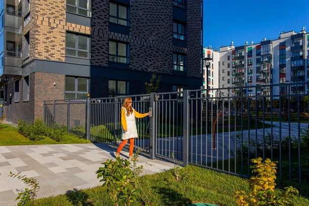 Входы в подъезды — просторные, с широкими дверями: автоматическими или со стопором, чтобы руки оставались свободными. При входе предусмотрен просторный тамбур с креслом и зеркалом, где можно спокойно найти ключ в сумке, поправить одежду или кого-то дождаться, не стоя под дождем. Холлы с удобной и понятной навигацией, лифты оборудованы тактильными табличками со шрифтом Брайля, кнопками с контрастной маркировкой и звуковым сопровождением, чтобы ориентироваться было легко, независимо от особенностей зрения.