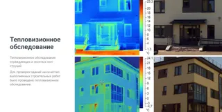 Тепловизионное обследование Тепловизионное обследование ограждающих и оконных конструкций. Для проверки зданий на качество выполненных строительных работ было проведено тепловизионное обследование.