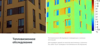 Тепловизионное обследование Тепловизионное обследование ограждающих и оконных конструкций. Для проверки зданий на качество выполненных строительных работ было проведено тепловизионное обследование.