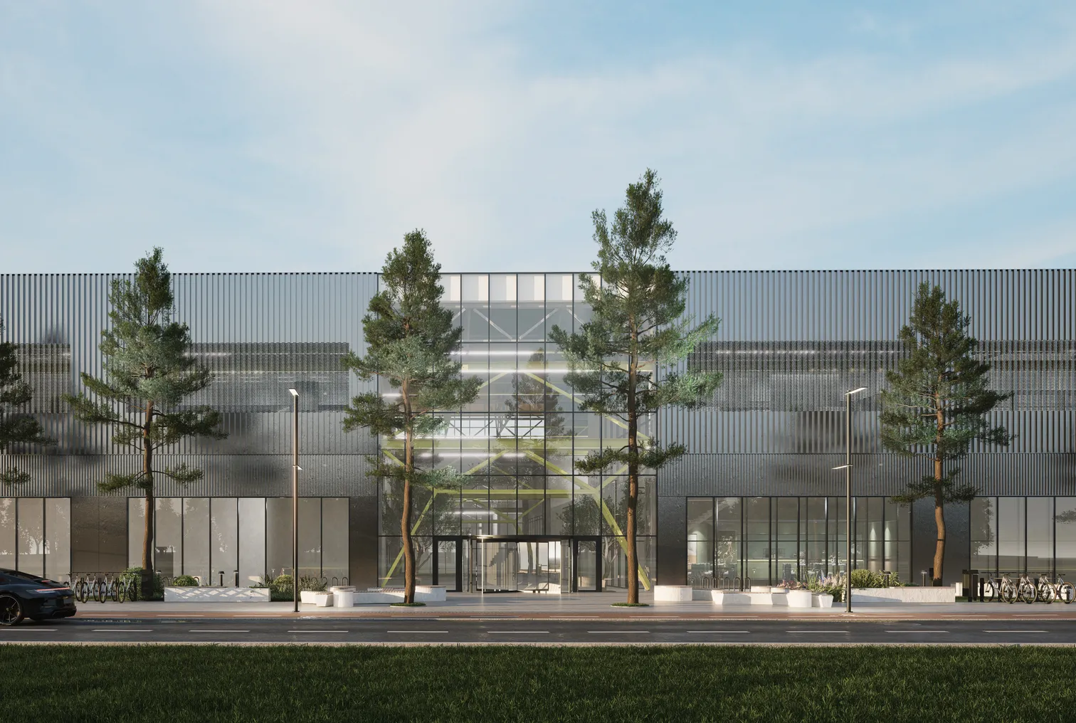Общественные пространства наполнены озеленением и естественным светом, который проникает через большие витражи. Производственные пространства выполнены в светлых тонах, а источниками естественного света являются световоды, которые создают более равномерное распределение света, не вызывают бликов и уменьшают тени.