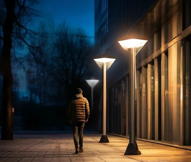Освещение территории выполнено светодиодными светильниками с возможностью программного управления включением освещения в темное время суток. Также фонари оснащены фотоэлектронными датчиками, которые способствуют сокращению светового загрязнения в темное время суток и снижению бесцельного использования энергоресурсов на освещение за счет включения фонарей только при нахождении поблизости человека.