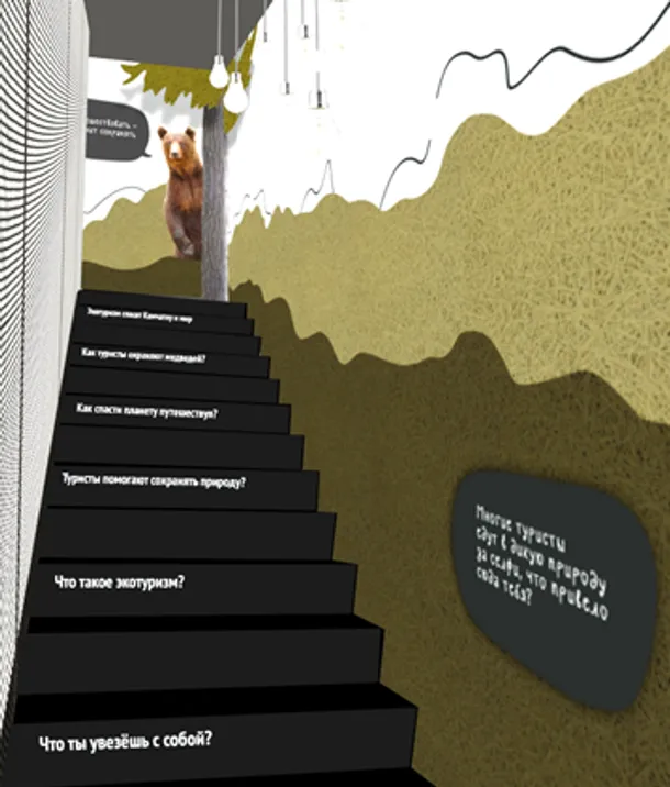 Вы когда-нибудь задумывались, как можно помочь планете, когда путешествуешь? А могут ли туристы помочь охранять медведей? На эти и другие вопросы можно найти ответ, поднявшись по лестнице размышлений на второй этаж экспозиции визит-центра.