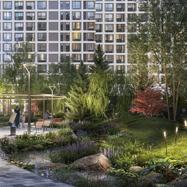Ландшафтное и наружное освещение спроектированы таким образом, чтобы не создавать дополнительного светового загрязнения окружающей среды.