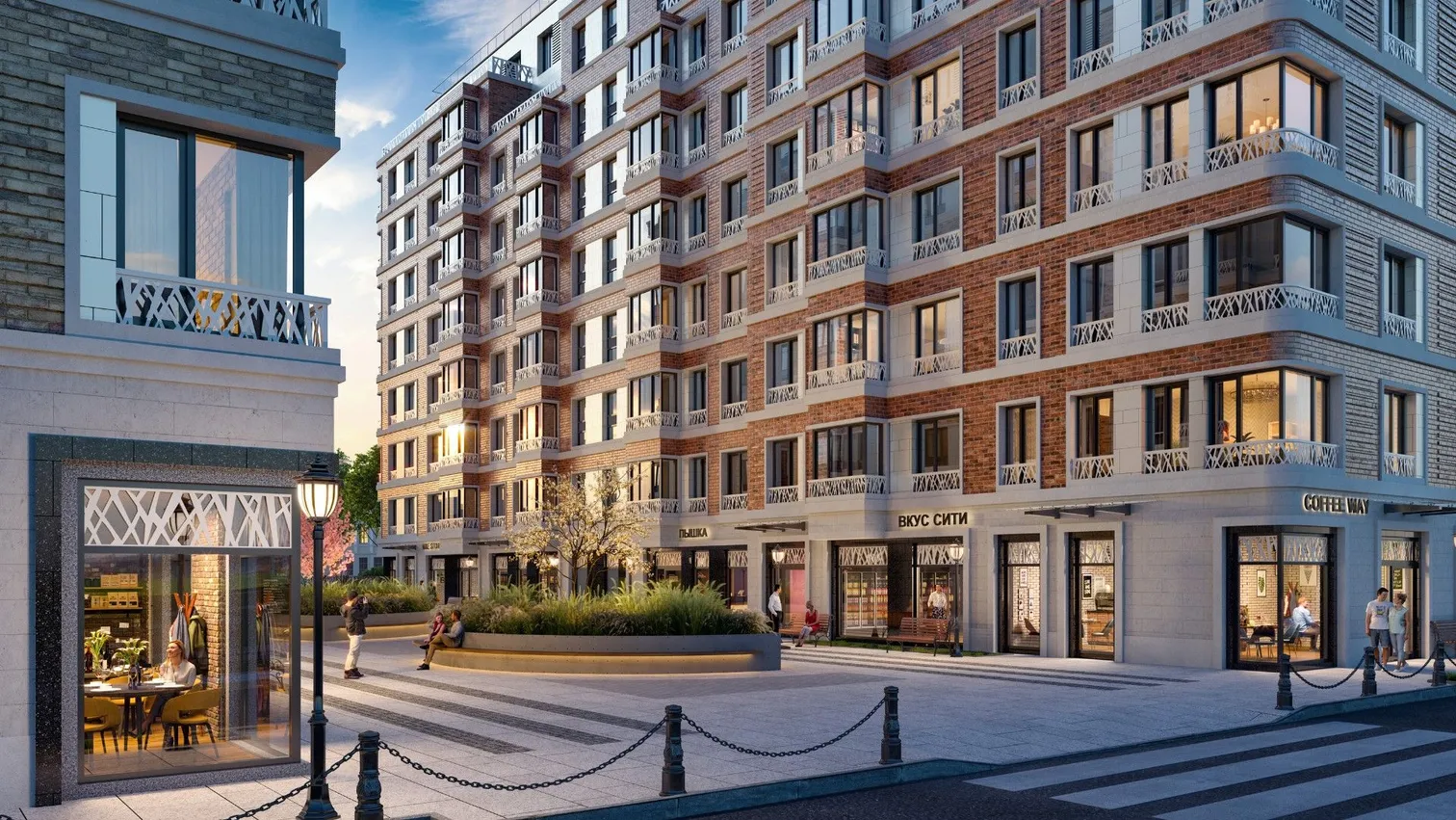Комплекс состоит из двух 9 этажных домов со встроенными помещениями на первом этаже, а на двух последних этажах располагаются квартиры с открытыми террасами и видом на город.