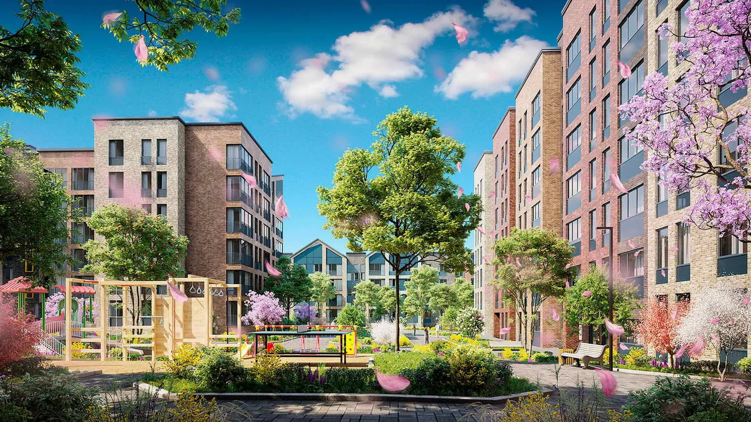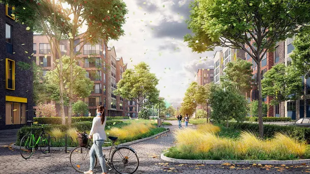 Особое внимание в проекте было уделено благоустройству территории. Во внутренних пространствах миниполиса предусмотрены удобные скамейки, розетки для зарядки телефонов, перголы. Игровые площадки спроектированы с учетом интересов разных возрастных групп, безопасны для детей и гармонично вписываются к окружающую архитектуру. Для спокойного отдыха проектом предусмотрены благоустроенные зоны барбекю, беседки и кинотеатр под открытым небом.