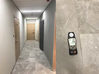 Измерение уровня освещенности в помещениях Проведена проверка уровня освещенности в МОП, правильность работы светильников и датчиков движения.