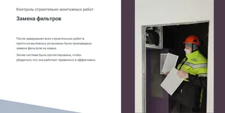 После завершения всех строительных работ в приточно-вытяжных установках была произведена замена фильтров на новые. Затем система была протестирована, для подтверждения, что она работает правильно и эффективно.