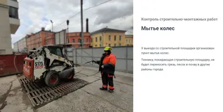 У выезда со строительной площадки был организован пункт мытья колес. Техника, покидающая строительную площадку, не разносила грязь, песок и почву в другие районы города.
