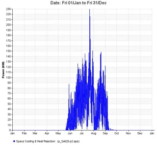 Расчет мощности на кондиционирование Еще один пример полезных результатов – потребляемая мощность на нужны кондиционирования. Так как данные доступны с точностью до помещения, с помощью них можно оценить, кондиционеры какой мощности требуется устанавливать.